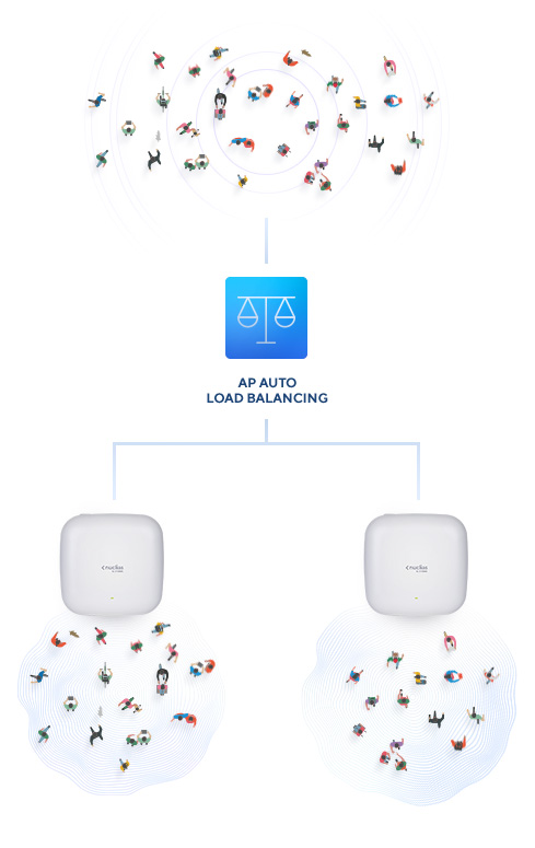 When multiple access points are deployed in the same location, Nuclias Cloud supports automatic load balancing between them without the need for additional hardware or configuration. This ensures the Wi-Fi network performs optimally, all the time. And BSS Colouring, OFDMA, and MU-MIMO all increase wireless network capacity and efficiency.