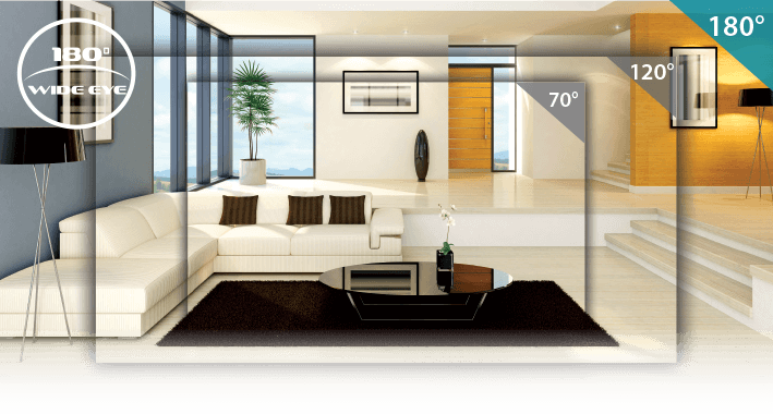 • Ultra-wide view lens to give you a full 180° field of view, letting you cover an entire room with a single camera