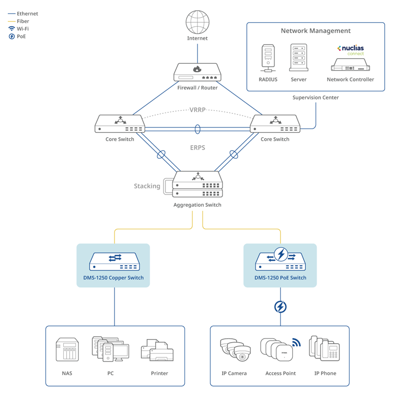 The DMS-1250 Series is engineered for high-speed, secure, and intelligent switching to support the evolving needs of growing business networks. With 10G uplink support, it delivers ultra-fast data transfers and seamless performance for bandwidth-heavy applications like video streaming, VoIP, and large file sharing.