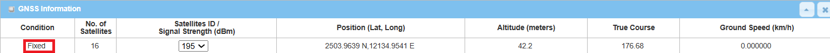When the GPS status of M2M device is Fixed, the GNSS information screen shows the status of current GNSS positioning information.