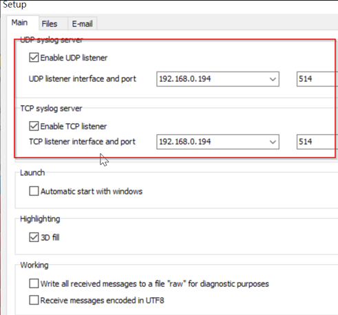 We take the DTM-550-G and the Visual Syslog tool as an example to conduct the following test. According to the DTM-550-G, we set the IP and port on Visual Syslog.
