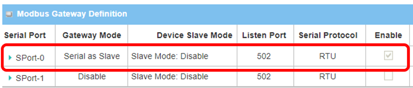 Serial as Slave: Select this when the attached serial devices are all Modbus Slave devices |