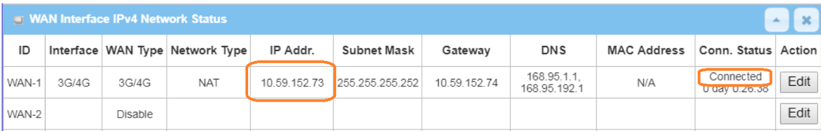 1. Before GRE configuration, please check the WAN interface status and make sure the M2M router/gateway WAN interface has already obtained a public IP address.