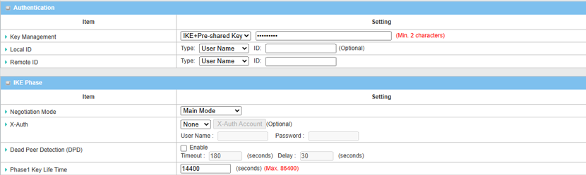 Key Management Select IKE+Pre-shared Key from the drop-down menu, and fill in the pre-shared key