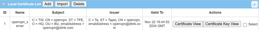 Click the Add button to generate the Local Certificate List