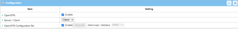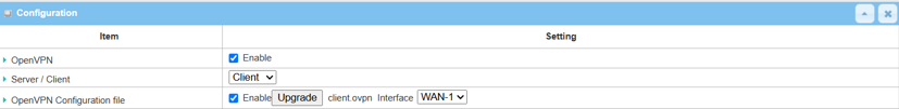 | OpenVPN Configuration File | Click the Enable box to activate the configuration upgrade for OpenVPN client |
