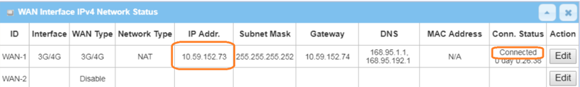 1. Before OpenVPN server configuration, please check WAN interface status and make sure the M2M router/gateway WAN interface has already obtained a public IP address.