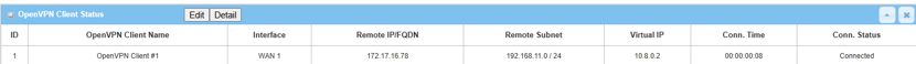 The OpenVPN Client Status will display the status of client connected to the OpenVPN server.