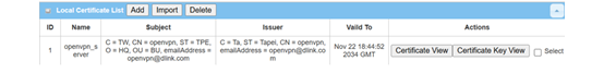 | Add | Click the Add button to activate OpenVPN client setting |