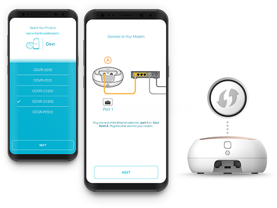 For a quick, PC-free setup: grab your phone, download the app, plug in your Covr Points, and follow the simple app instructions. Connect your smart home devices to Covr with the one-touch WPS button.