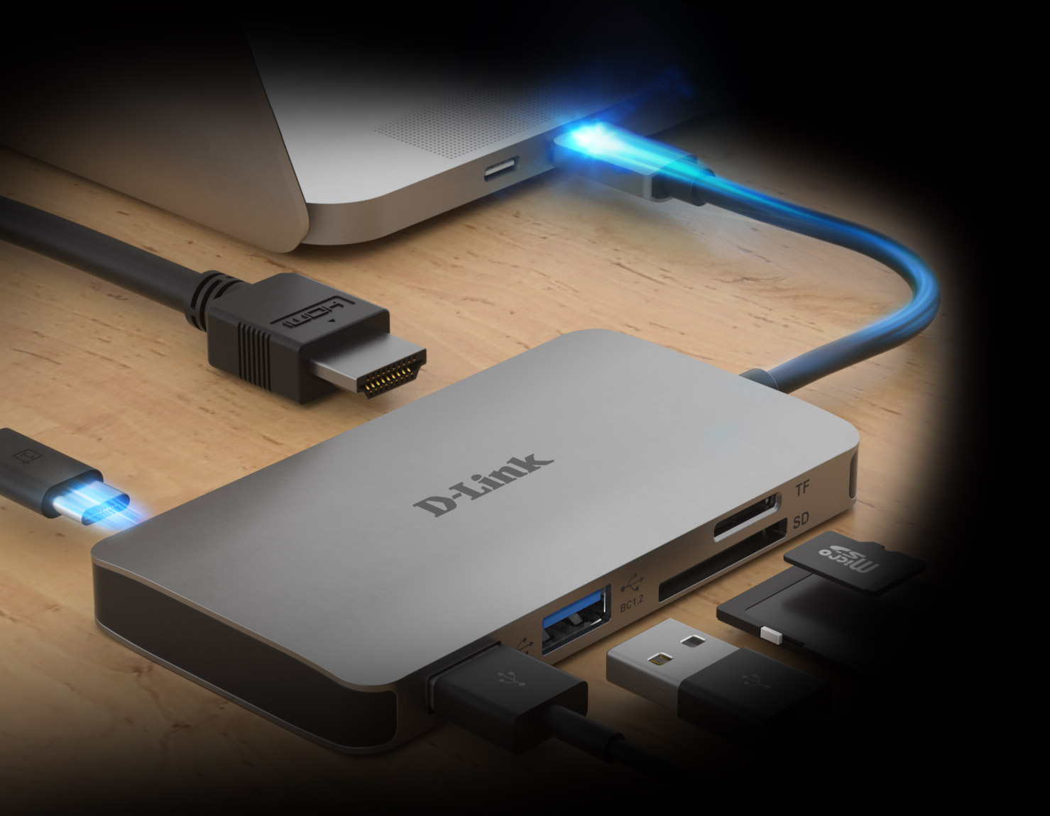 Instantly add a Dual-slot SD and microSD card reader, an HDMI port for a second display, two USB 3.0 ports with one that can Quick Charge, and one USB-C port to your laptop simply by plugging the hub into any USB-C port.