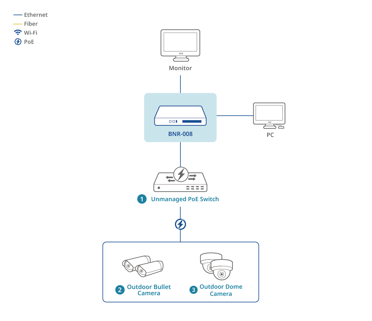 Le BNR-008 s’intègre parfaitement aux caméras IP, en déclenchant automatiquement l’enregistrement grâce à l’analyse vidéo intelligente.