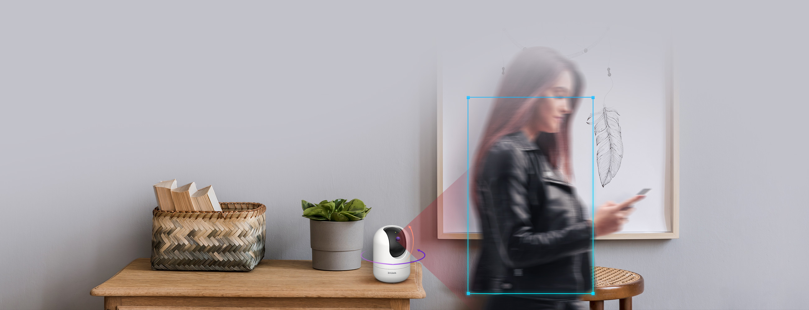 Observez une pièce entière sous tous les angles, en résolution 1080p Full HD avec une seule caméra. Avec la fonctionnalité de sélection de l’angle de vision panoramique, vous pouvez facilement déplacer la vue de la caméra vers une zone spécifique d’un simple geste. La fonction de suivi automatique des mouvements effectue un panoramique automatique horizontal/vertical pour suivre un objet en mouvement.