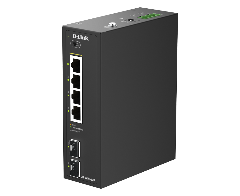 Le DIS-100G-06P est un switch industriel non administrable équipé de quatre ports 1G PoE et de deux ports SFP, offrant une simplicité de déploiement plug-and-play. Les ports SFP prennent en charge la transmission de données longue distance, éliminant les limitations de distance du câblage Ethernet traditionnel. Grâce à un fonctionnement fiable et performant, il est parfaitement adapté aux déploiements en périphérie pour des applications telles que la vidéosurveillance HD, les points d’accès sans fil et bien plus encore.