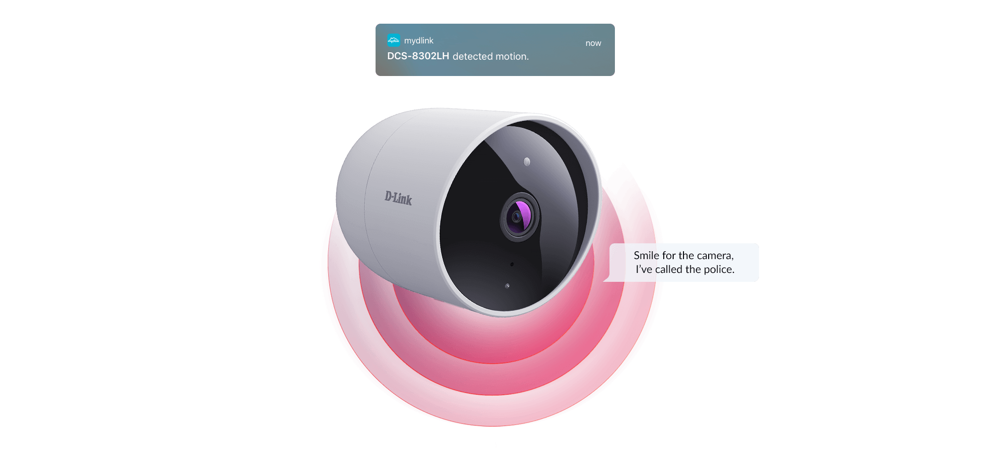 Dankzij uitgebreide pushmeldingen kunt u meer zien van wat er gebeurt en kunt u acties kiezen zoals Live View bekijken of een buurman bellen, allemaal zonder uw telefoon te ontgrendelen en in te loggen op de mydlink™ -app.