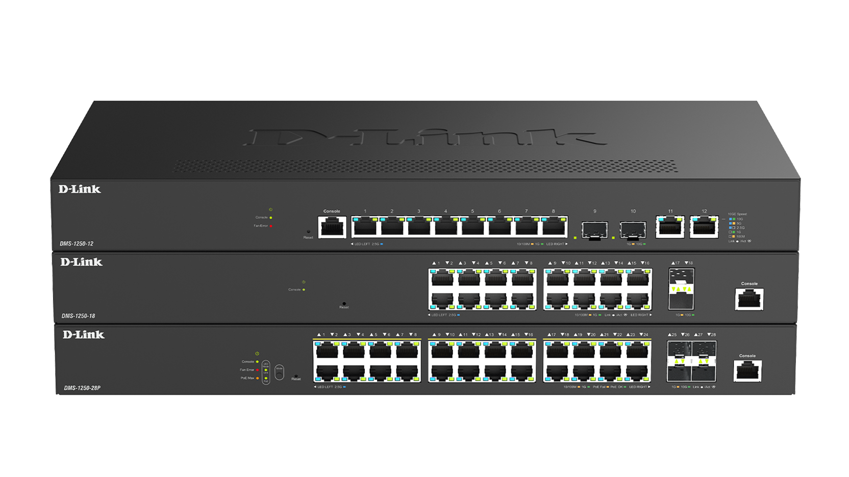 Díky široké škále Fast Ethernet, Gigabit, 10-Gigabit a 40-Gigabit přepínačů poskytuje D-Link řešení pro metalické a optické sítě, od přístupu k páteři.