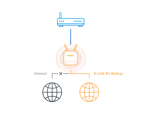 Router DWR-921 je také připraven pro případný výpadek pevného připojení k internetu. Podpora dvoupásmového připojení 4G LTE/3G vás v případě výpadku sítě 4G přepne do 3G, zatímco dodatečná možnost xDSL / FTTH Ethernet WAN poskytuje bezporuchové připojení, pokud selže vaše pevné nebo mobilní širokopásmové připojení³