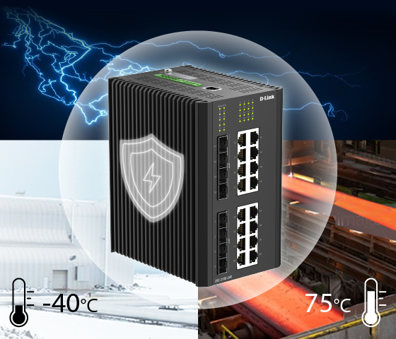 The DIS-310G-24X is built with a rugged, durable design ideal for harsh environments such as outdoor installations, unconditioned factory floors, and remote sites. With a wide operating temperature range of -40°C to 75°C, it ensures stable and reliable performance even in extreme conditions. Its industrial-grade IP40-rated enclosure protects against dust and solid particles larger than 1mm, while the fanless design and 6KV surge protection on all Ethernet ports help reduce the risk of downtime and enhance long-term reliability.