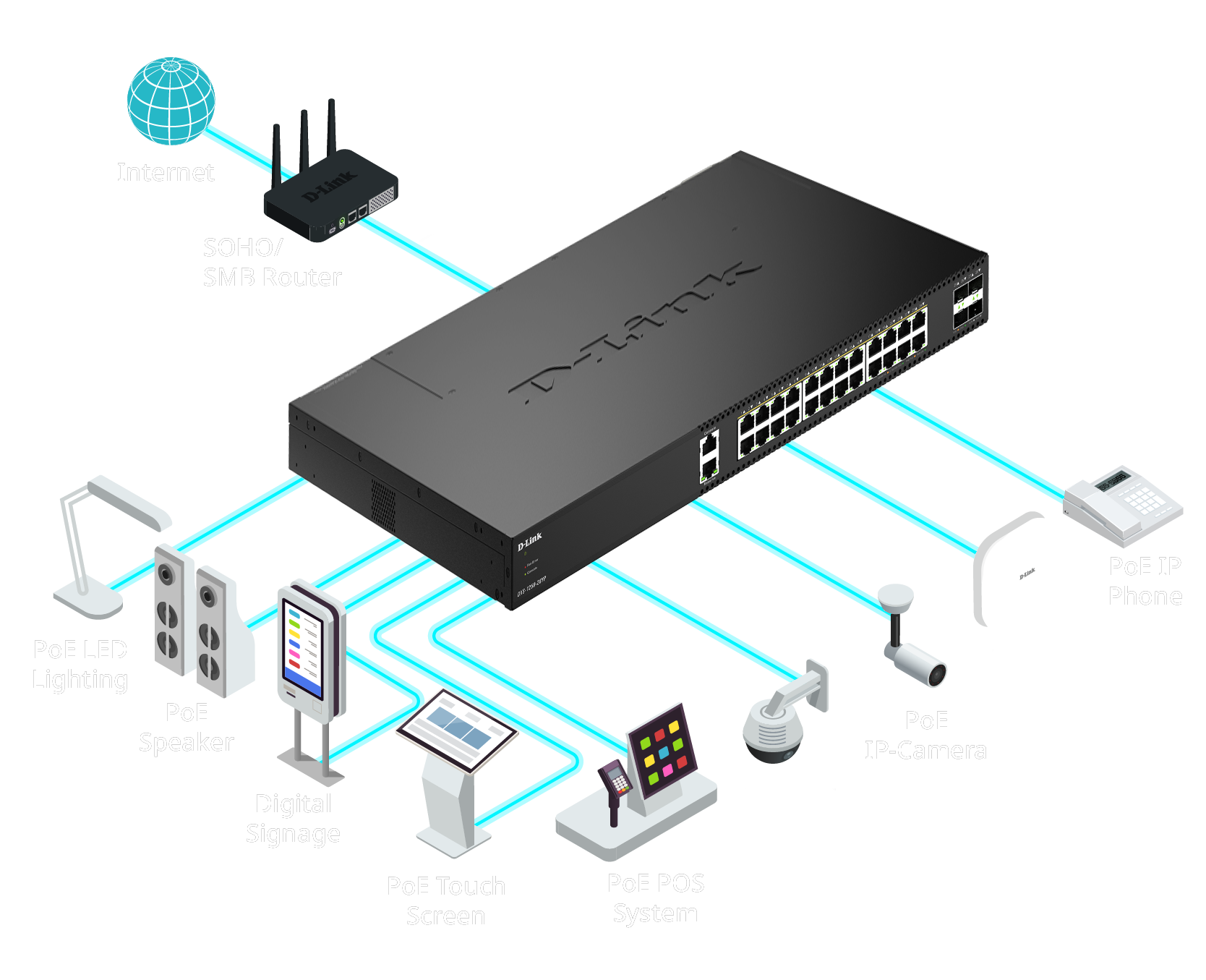 10G PoE ports deliver high-speed data and power over a single cable—ideal for Wi-Fi 7 access points, IP cameras, and IoT devices. With up to 470W total PoE power, they remove bottlenecks, simplify deployment, and ensure scalable growth.