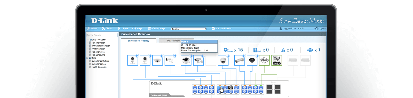 D-Link’s exclusive, easy-to-use Surveillance Mode interface gives you a snapshot of your security topology in an instant.