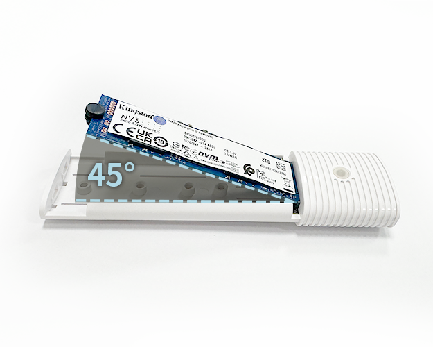 No screwdrivers are needed; just install your M.2 SSD using the included latch, slide the cover to secure the case, and you’re ready to go.