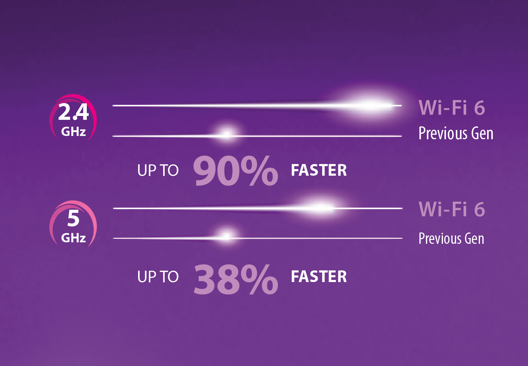 - AX1800 Speeds up to 600 Mbps (2.4 GHz) / 1200 Mbps (5 GHz)