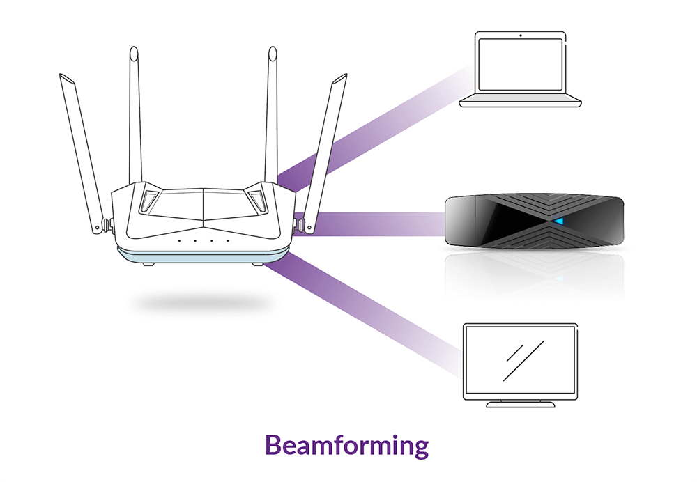Beamforming technology detects your DWA-X1850's location and focuses a direct signal to the device allowing for even greater coverage and range.