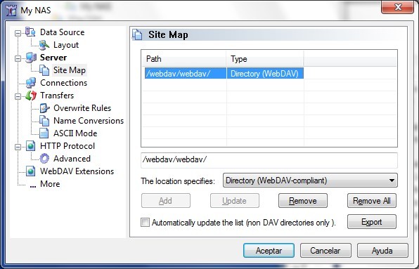 - Change the path to read: /webdav/YOUR WEBDAV SHARE