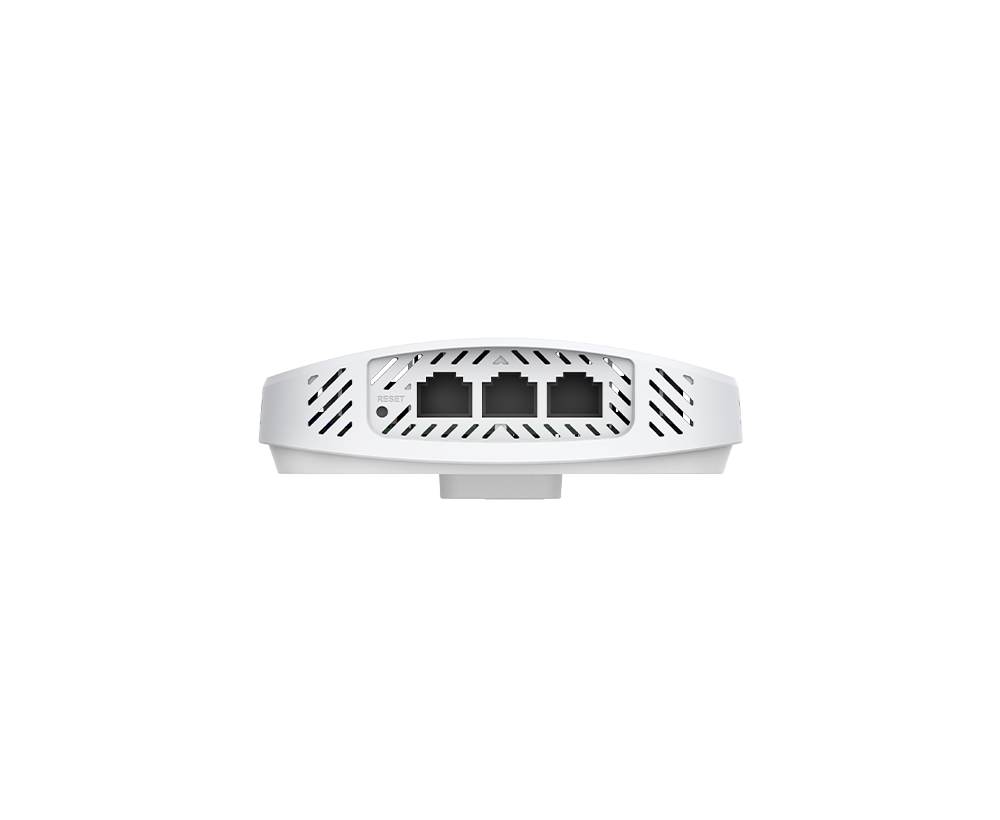 Equipped with one uplink and three downlink Gigabit ports, the Access Point (AP) extends wired connectivity for VoIP phones, PCs, printers, or smart TVs. One downlink port supports PoE passthrough, allowing you to power an additional device without the need for a separate power supply.