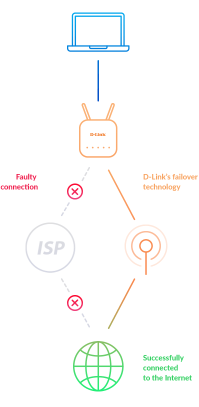 When your 5G/LTE stops working, you stay connected to your fixed-line Internet (Fibre, Cable, DSL) thanks to D-Link’s Failover technology.