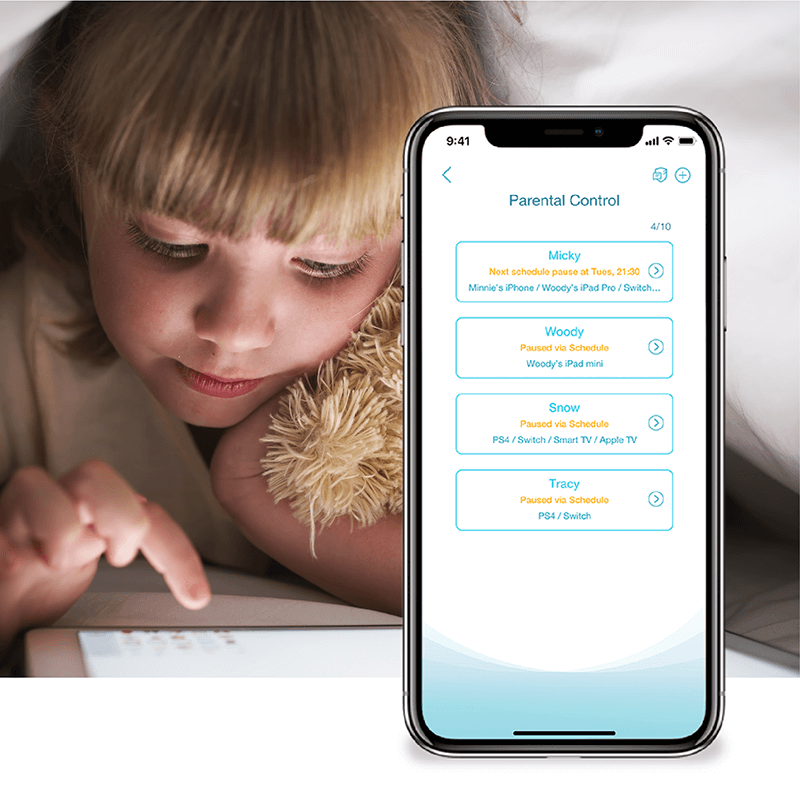 The cutting-edge AI technology identifies your Wi-Fi needs and fixes your Wi-Fi issues. With EAGLE PRO AI, you can easily handle Mesh system, Client Priority, Wi-Fi Interference, and Websites Filter with just a single click.