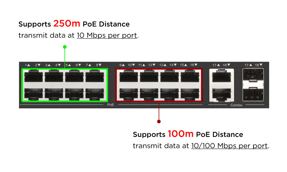 - Delivers an impressive PoE power budget of up to 247W and 30W per port