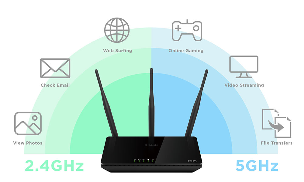 Use the 2.4 GHz band for everyday tasks, while leaving the high-speed 5GHz AC band free for video streaming, online gaming and large file transfers. With fewer devices using the high-speed 5GHz band, there’s less interference and congestion, giving you better performance and a lag-free wireless experience.