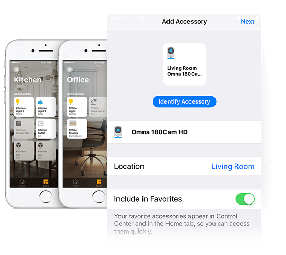 La caméra Omna 180 Cam HD fonctionne également de façon transparente avec d'autres appareils compatibles avec Apple HomeKit. Contrôlez et allumez facilement les lumières, les prises intelligentes, les thermostats et les alarmes sonores grâce à la fonction de détection de mouvement.