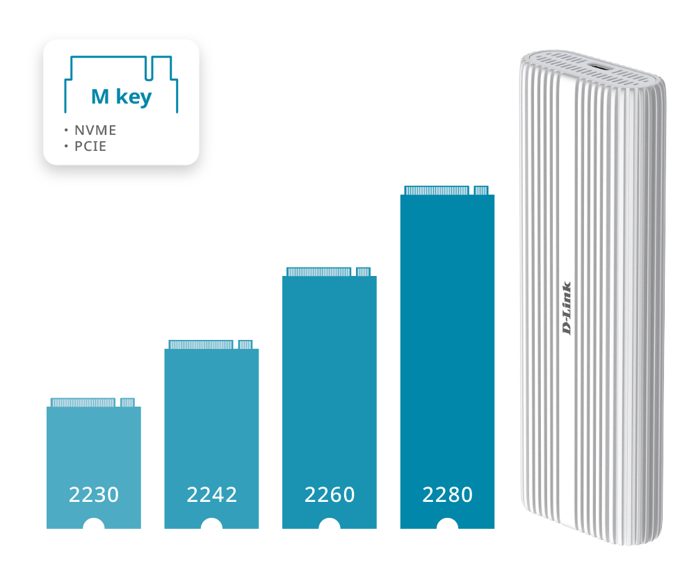 The D-Link DSP-411 SSD Enclosure delivers ultra-fast, portable up to 8 TB storage for professionals and creators. Supporting USB4, it offers up to 40 Gbps high-speed data transfer, ideal for 4K editing, backups, and streaming. With a durable aluminum design, a silent cooling MagLev fan and tool-free setup, it’s perfect for on-the-go use across Windows, macOS, Android and Linux devices, combining speed, convenience, and versatility in one compact enclosure.