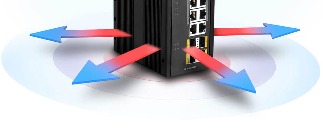 Rozpraszanie ciepła odbywa się za pośrednictwem specjalnie zaprojektowanej obudowy. Przełączniki z rodziny DIS, które nie zawierają części ruchomych, charakteryzują się krótkim czasem wznawiania pracy, zmniejszającym konieczność wzywania pomocy technicznej.