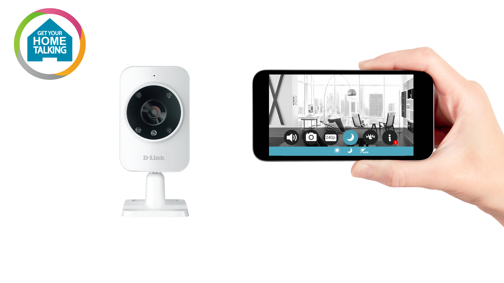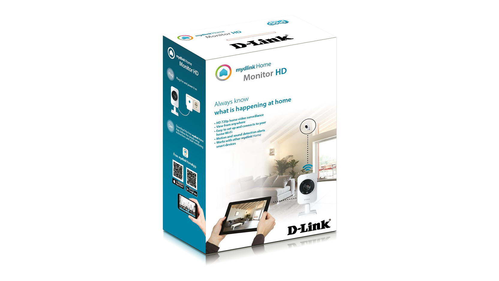 W pełni zabezpieczone połączenie przez Internet ze smartfona lub tabletu. Aplikacja mydlink™ Home* pracuje w systemie iOS oraz Android.