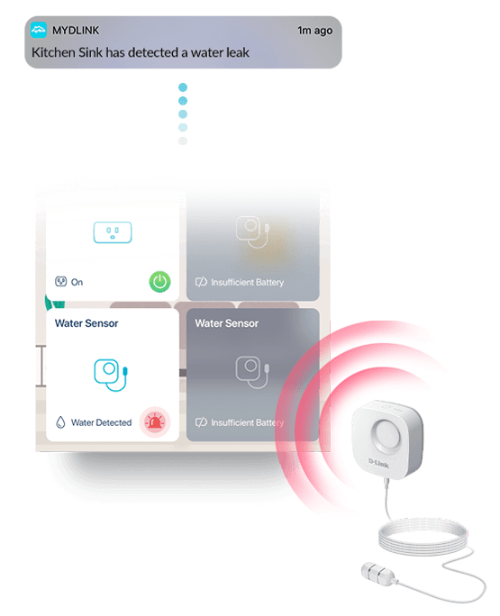 Works with other mydlink™ smart home devices and Google Assistant to instantly alert and assist you when leaks occur.