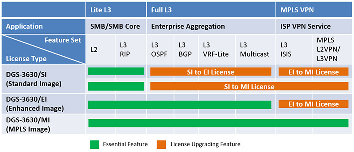 The DGS-3630 Series is designed for use with three different software images: