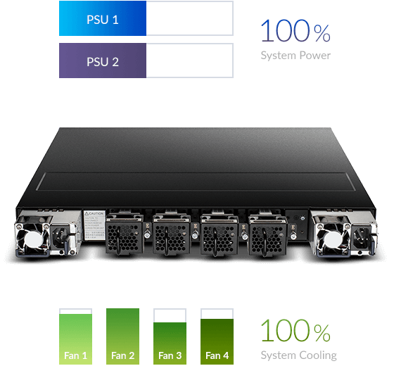 Both the fans and PSUs are hot-swappable to increase uptime, and front-to-back airflow allows the creation of optimal cooling configurations.