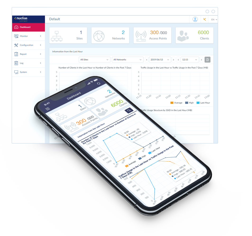 Med Nuclias Connect kan du hantera och styra ditt nätverk var som helst där det finns internetanslutning. Det ger omfattande kunskaper om nätverket och användarna genom trafikanalyser och statusrapporter, som är lätta att följa upp i det intuitiva gränssnittet via en webbläsare eller vår app. Informationen från trafikdatan kan användas för att skapa affärsvärde, och du kan följa trafiken ända från nätverksnivå ner till enstaka accesspunkter.