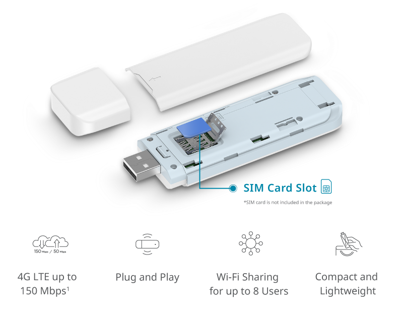 - Plug and Play: Simply insert your SIM card and plug the adapter into your computer to instantly connect to your mobile Internet
