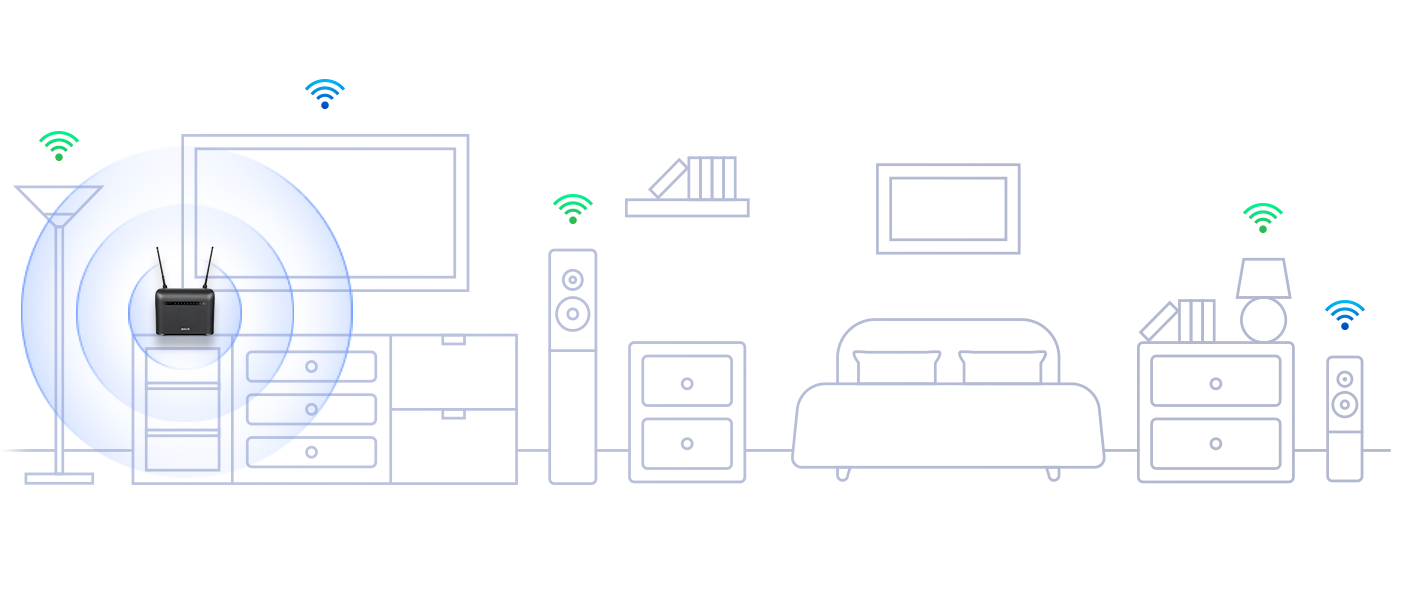 866 Mbps (5 GHz) + 300 Mbps (2.4 GHz) for video streaming, web browsing, social media, and downloading on multiple Wi-Fi devices