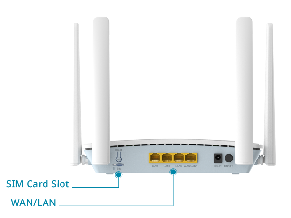 3 x Gigabit Ethernet LAN port 1 x Gigabit Ethernet WAN/LAN port 1 x WPS/Reset button 1 x Power button 1 x SIM Card slot (Nano SIM: 4FF) 1 x power connector |