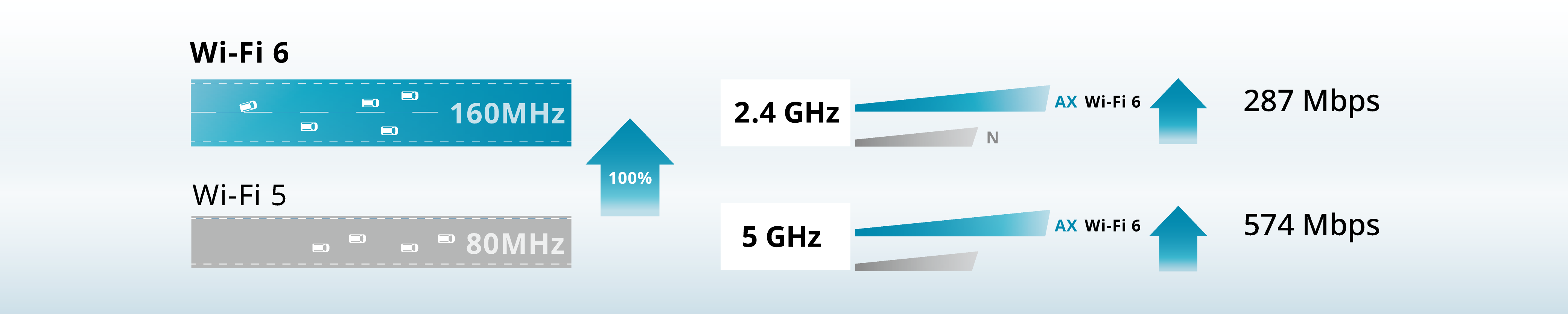 - AX900 效能: 傳輸速度高達 574 Mbps (5GHz) 與 287 Mbps (2.4GHz)1