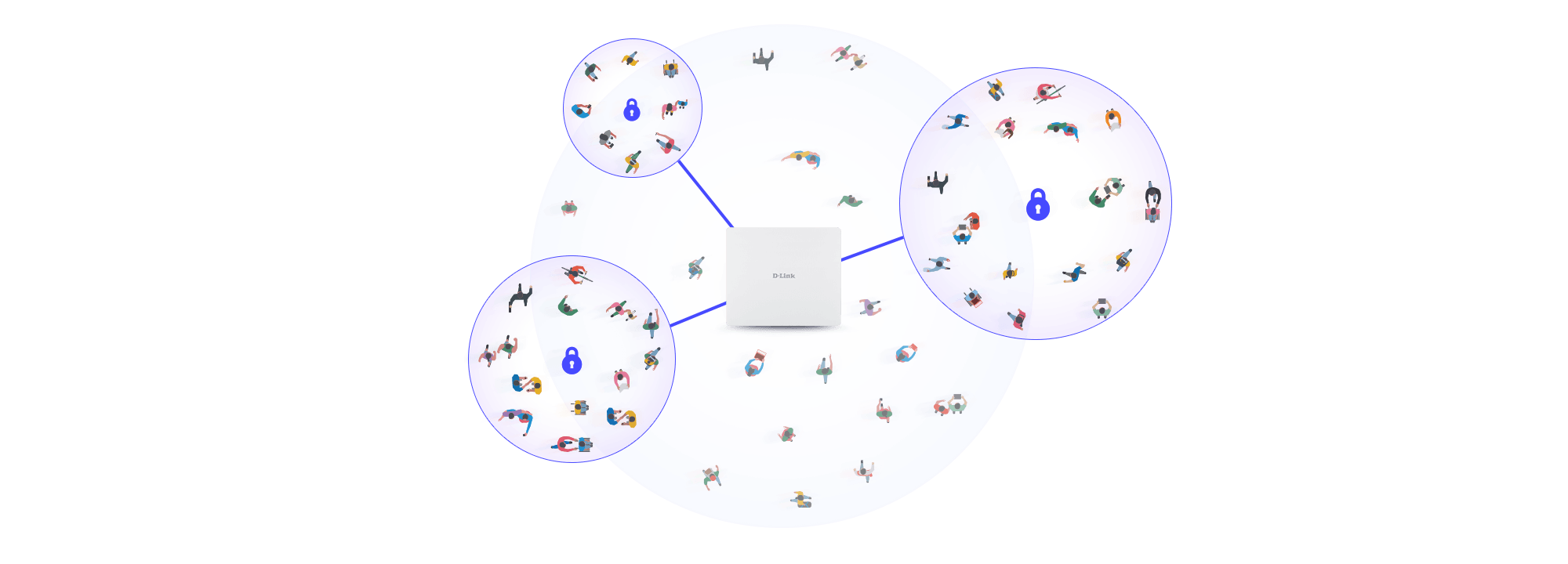 每個頻段支援最多 8 個 VLAN,允許多個 SSID 對用戶進行分群管理。內建無線用戶隔離機制,有效限制用戶間的直接通訊。此外,網路存取保護機制 (Network Access Protection, NAP) 可根據用戶需求設定多層級的網路存取權限。
