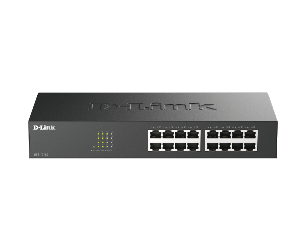 The DES-1016D switch offers an economical way for SOHO and small to medium businesses (SMB) to benefit from high-speed networking. It provides twenty-four ports for easy expansion of your network and a quick way to upgrade your network to Fast Ethernet connectivity. The switches speed file transfer times, improve slow and sluggish networks, keep your vital business applications available, and help your employees respond more quickly to customers and each other.