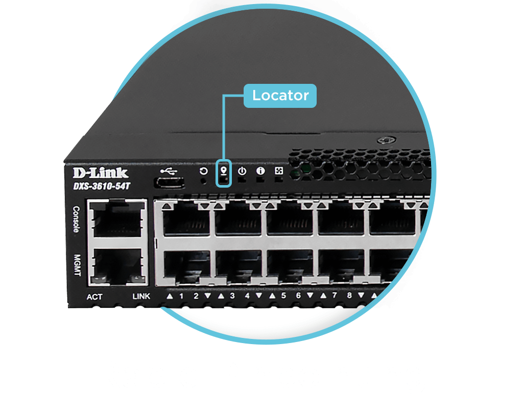遠端啟動前面板 LED 指示燈,能在龐大的電信機房、資料中心或伺服器群當中,快速找到需要高度關注 DXS-3610設備。