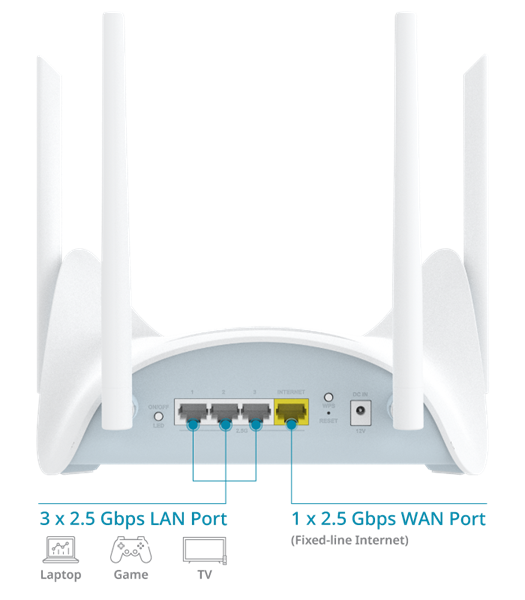 - 2.5G 高速有線連接::2.5G WAN 埠與 3 個 2.5G LAN 埠。