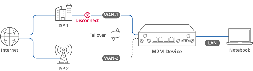 1.1 WAN Failover: When Ethernet WAN-1 is disconnected, the network will automatically fail over to Cellular WAN-2.